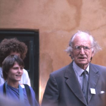 Sir Neville Mott 1987 auf der 12. ICALS in Prag, links Karin Jahn